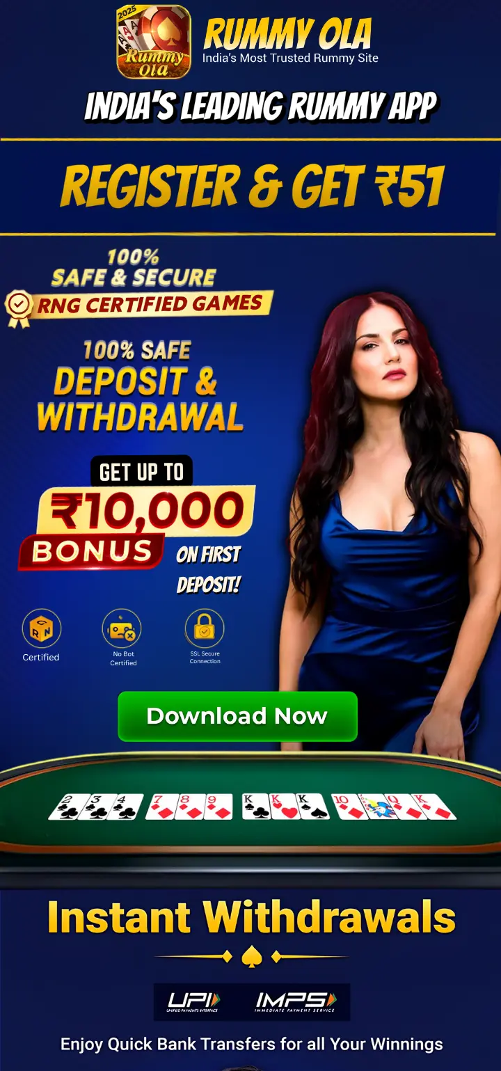 Rummy Ola is a real-money online rummy platform where you can play different rummy variations securely. fair play, and 24*7 Online support.
